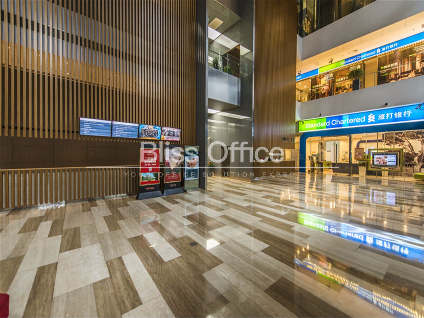 上海渣打银行大厦里面有(传统办公楼+联合办公产品)。